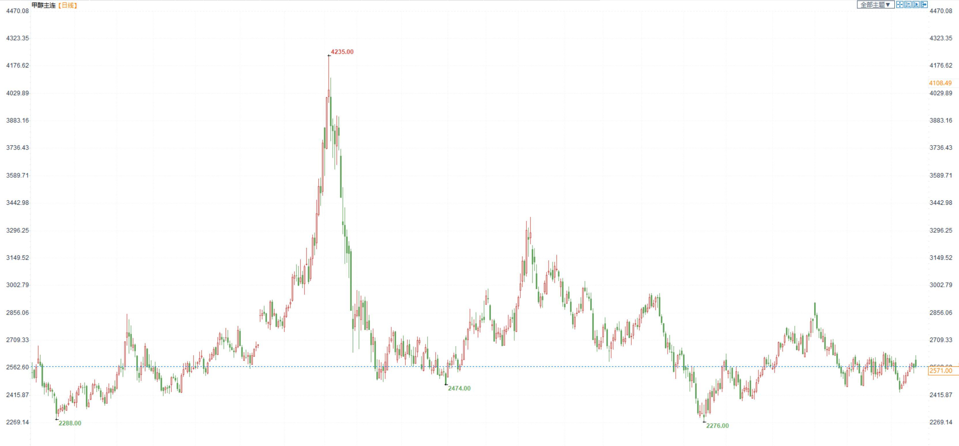 期货市场,甲醇2305合约小幅收跌,收盘价2571。现货端,港口库存较低,目前现货强势于期货。